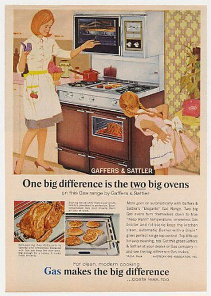 Now you’re cooking with gas—and on how many burners?! Blow them away with this impressive array for the serious domestic chef of the 50s and 60s. It’s in fabulous shape. Gaffers & Sattler may be no more, but in its heyday was plugged by Mary Tyler Moore, Doris Day, and even Natalie Wood & Robert Wagner.