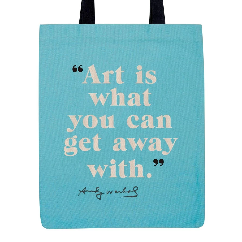 Tote all your canned goods, coke bottles, and flowers in style! This Andy Warhol Poppies Tote Bag features his iconic Poppy Flowers illustration on one side and his quote, “Art is what you can get away with” on the other. Comes with three limited edition pins—Banana, Andy Warhol Self Portrait, and Poppies with the quote “POP ART IS FOR EVERYONE.” Secondary hangtag features facsimile of an Andy Warhol art store receipt. Heavy-gauge cotton canvas.