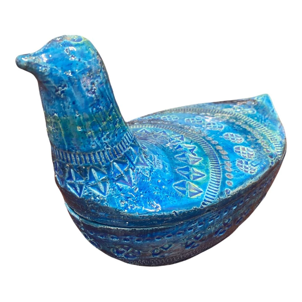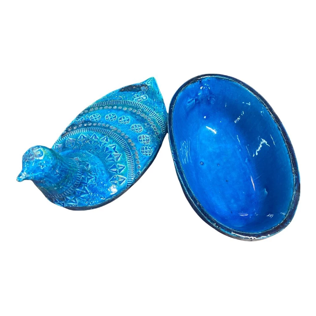 Bitossi Italy – covered bird bowl / bowl with lid – Rimini Blu – Aldo Londi – turquoise – midcentury