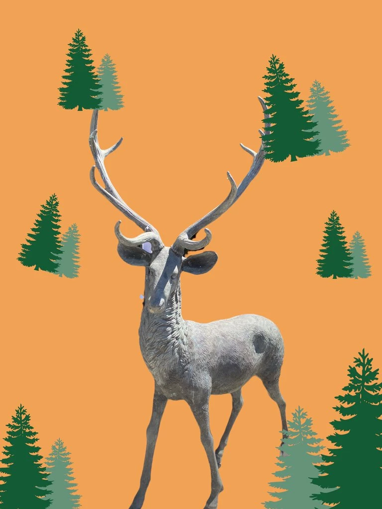 HausOfRex Bronze Buck Deer Sculpture Looking Playing Loving