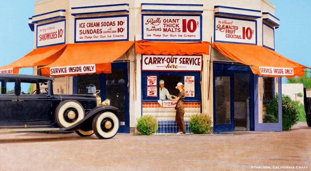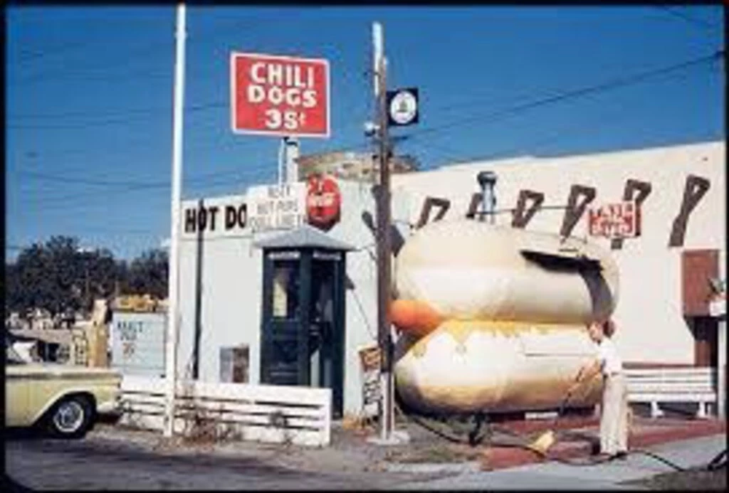 At the dawn of the automobile age, Americans’ predilection for wanderlust prompted a new wave of inventive entrepreneurs to cater to this new mode of transportation. Starting in the 1920s, attention-grabbing buildings began to appear that would draw in passing drivers for snacks, provisions, souvenirs, or a quick meal. The architectural establishment of the day dismissed these roadside buildings as “monstrosities”.