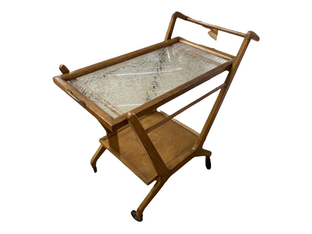 HausOfRex Dining Mid Century Modern Italian Walnut 2 Tier Trolley Bar Cart