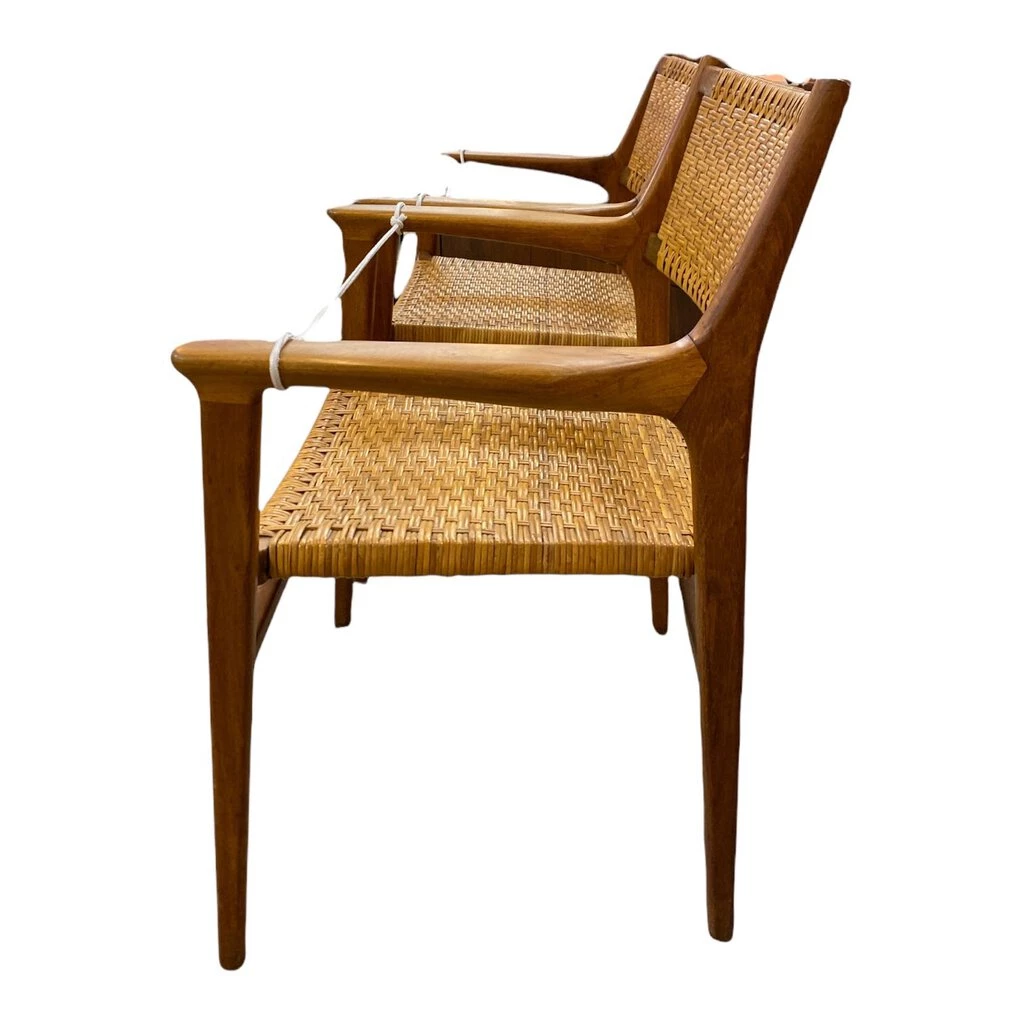 HausOfRex Hans J. Wegner For Johannes Hansen Teak And Cane Easy Chair – 1951 – The Pair
