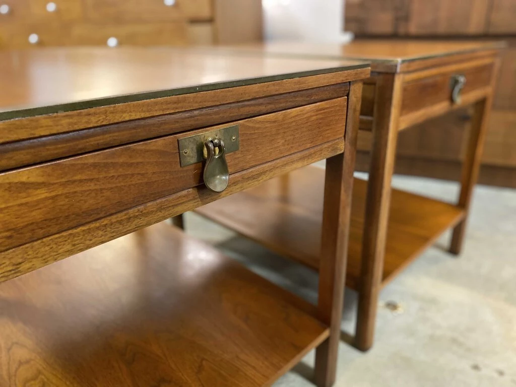HausOfRex Imperial Furniture Walnut & Brass End Tables, Mid-Century Modern (Pair) Living
