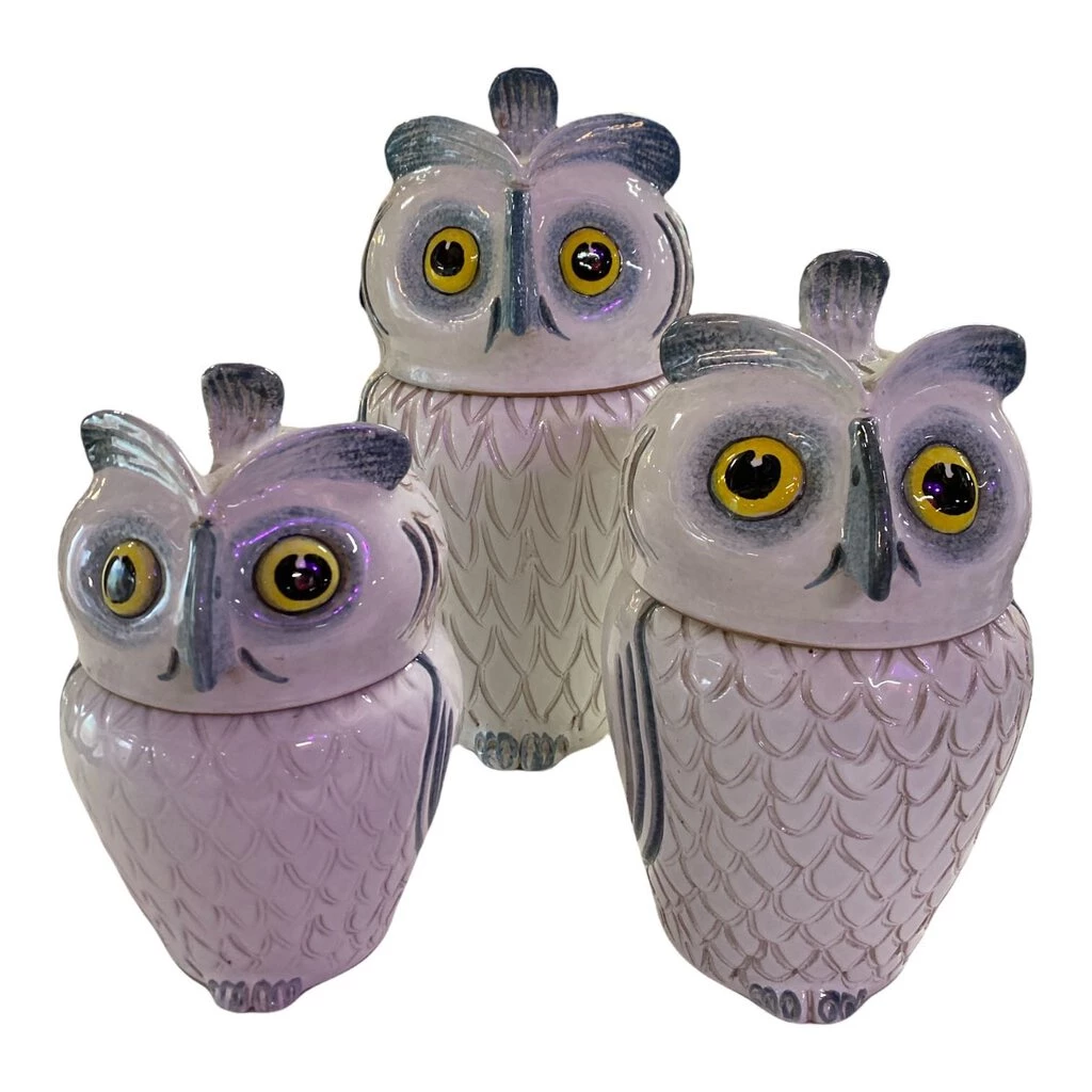 HausOfRex Italian Ceramic Mid Century Owl Canisters (set Of 3)