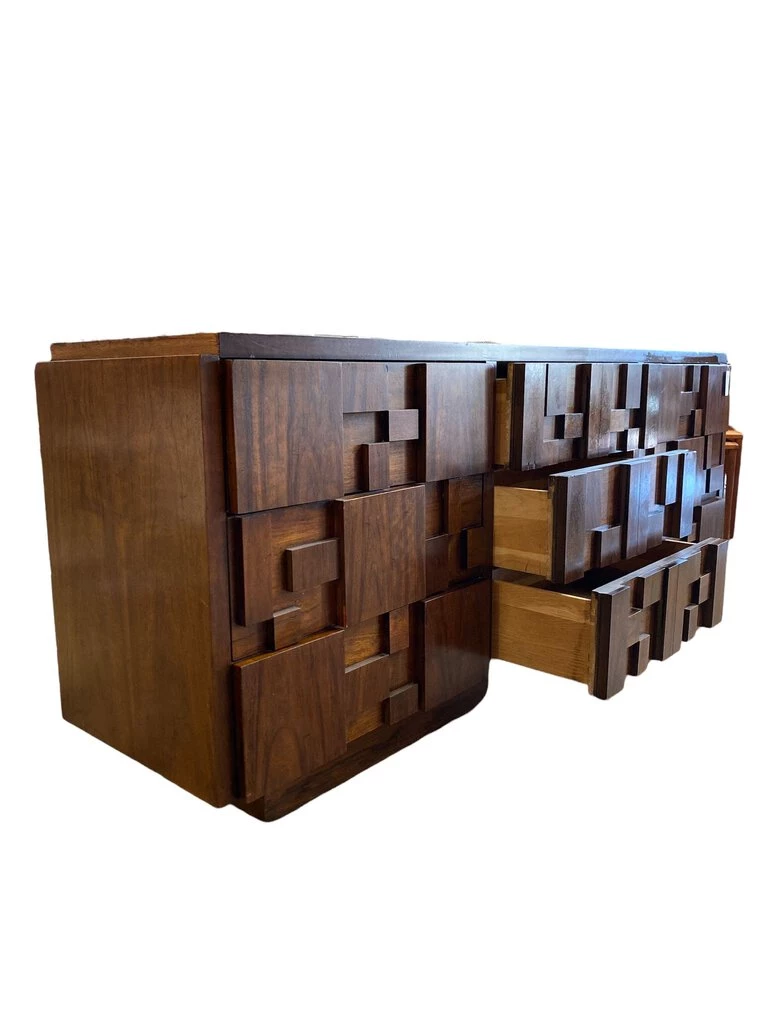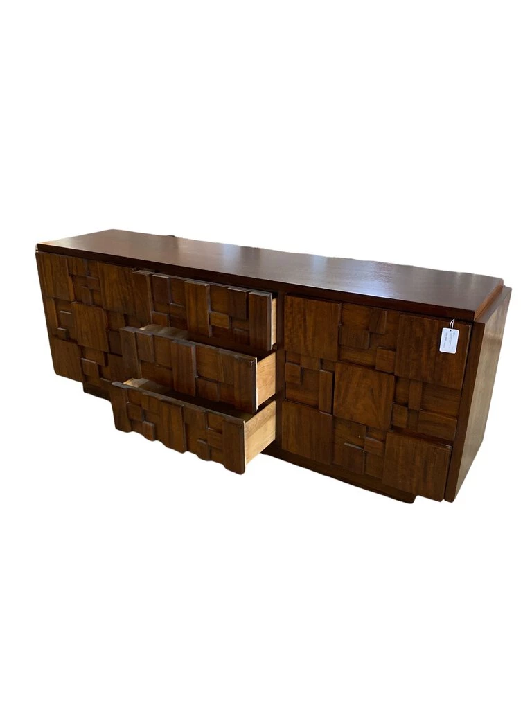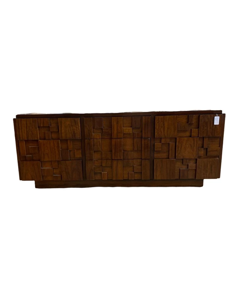 HausOfRex Lane Brutalist Cubist Mid Century Walnut Long Dresser