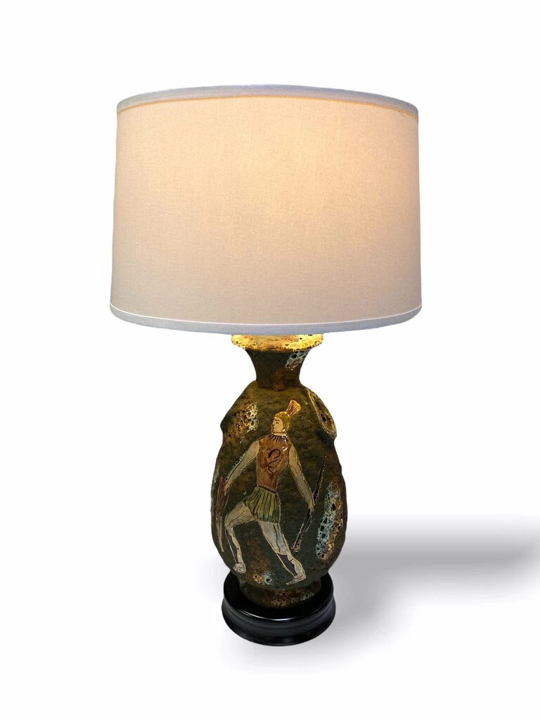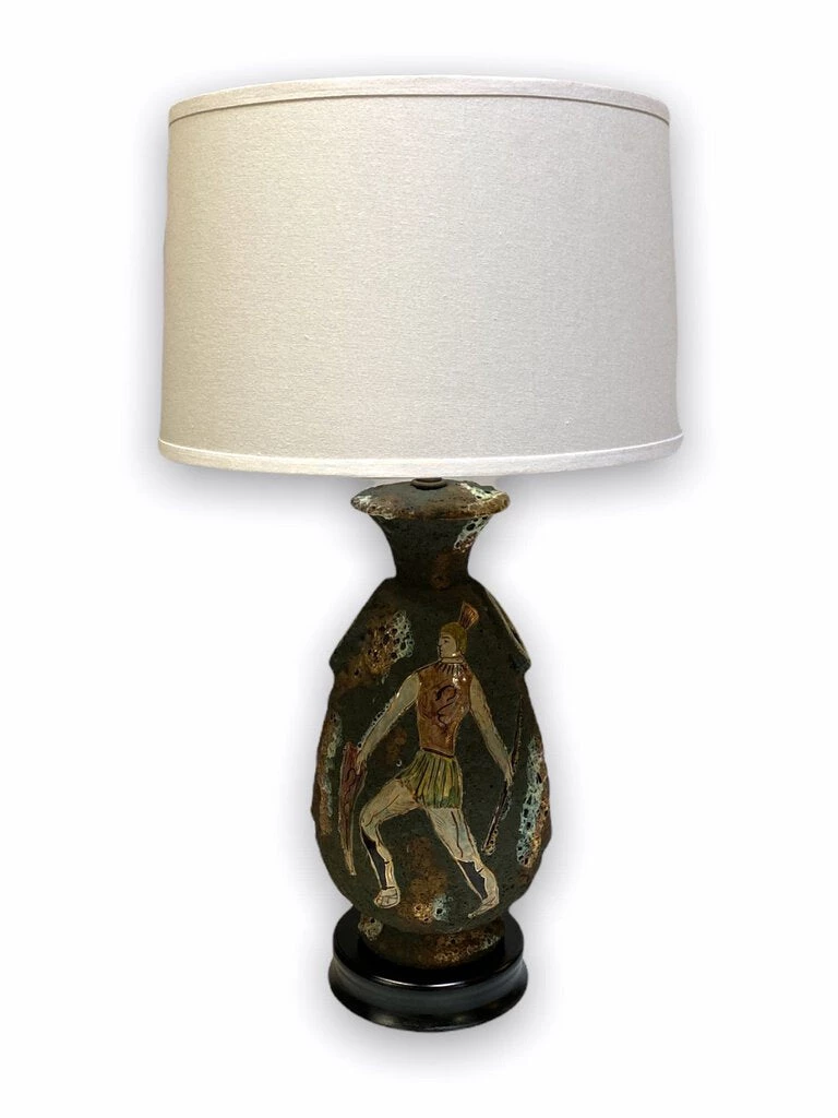 HausOfRex Lighting Italian Volcanic Lamp With Greek Hoplite By Italo Casini, C. 1930s