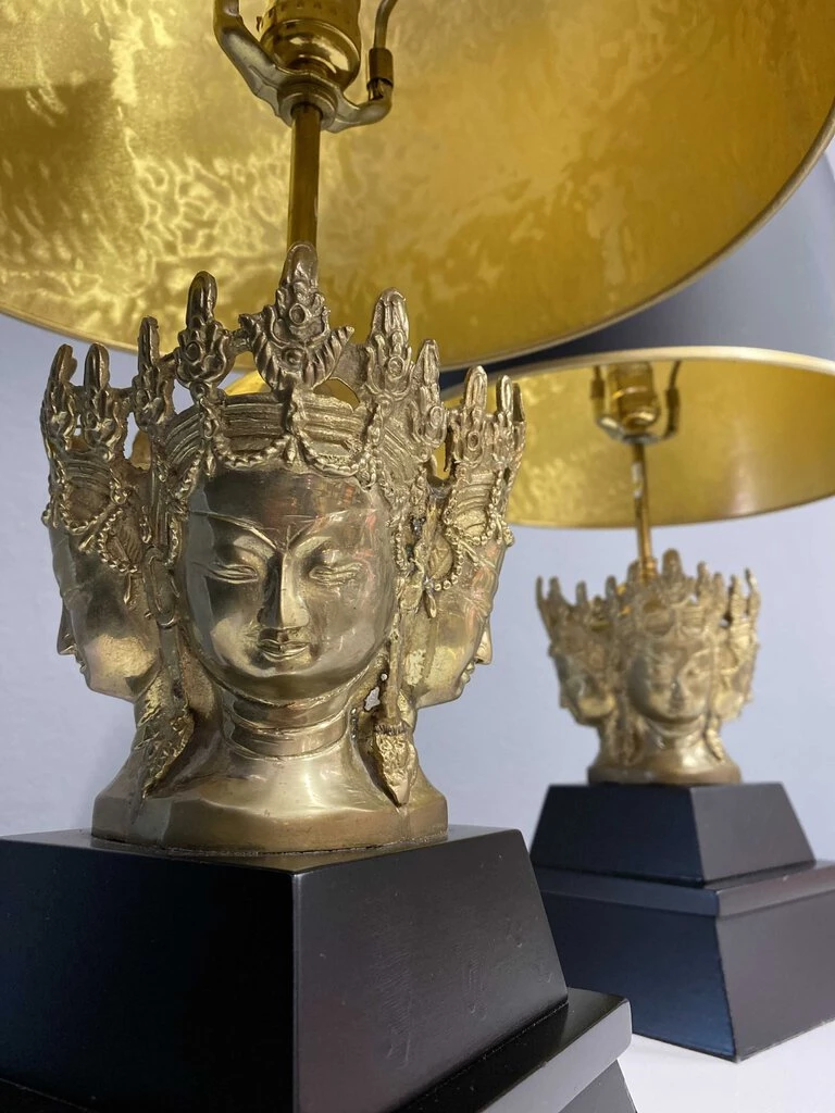 HausOfRex Lighting Marbro Brass Many-Faced Goddess Table Lamps (Pair)