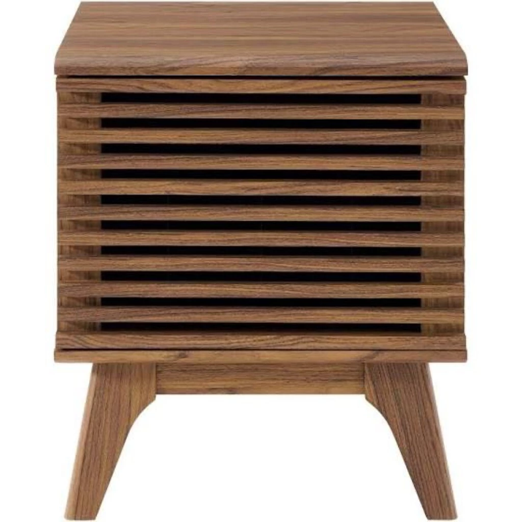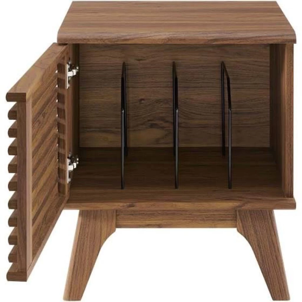 Tap into mid-century aesthetics with The Grid Vinyl Record Display Stand. The Grid features a durable particleboard frame with walnut grain laminate, four tapered wood legs, non-marking foam foot pads, and a hinged slatted door with ample storage space for your vinyl record collection. Complete with metal dividers to keep records standing upright, The Grid’s contemporary linear style is the perfect addition to the modern living room, lounge space, bedroom, or recreation area.