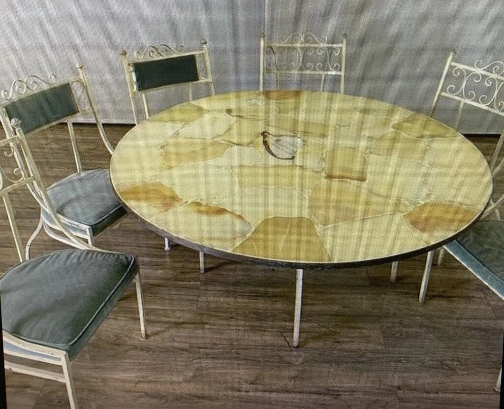 HausOfRex Living Vintage Wrought Iron/ Stone Mosaic Outdoor Dining Set