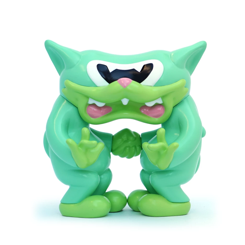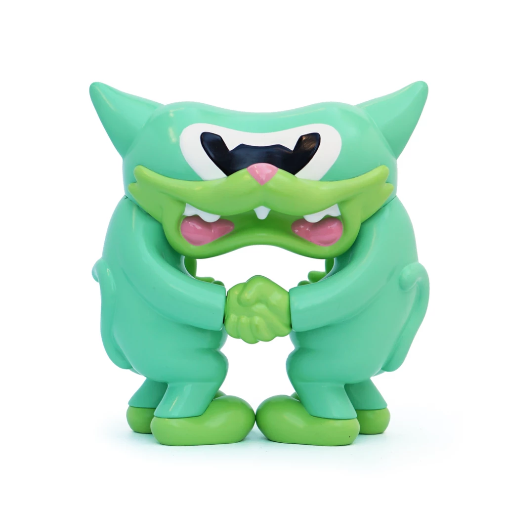 MunkyKing is proud to present the Alley Cat Black colorway of The Broken Promise, Ausgang’s second designer vinyl release with MunkyKing featuring his trademark psychedelic cat as designed by Dave Bondi. The Broken Promise presents a four-armed bifurcating cat shaking hands with itself while simultaneously flashing the Hindu hand gesture that represents a lion-faced incarnation of Vishnu, the Great Protector Simhamukha. So, although a mutually beneficial promise seems to have been made between the two figures, each one seeks security, aware that the other can still back out of the deal. Simple! About the Artist: Anthony Ausgang is a Los Angeles-based Low Brow artist, writer, and musician best known for his artwork featuring psychedelic cats. His artistic production ranges from custom painted automobiles, acrylic paintings and commercial illustration, to video game character design and sportswear. In addition to exhibiting his paintings in galleries and museums throughout the Unite…