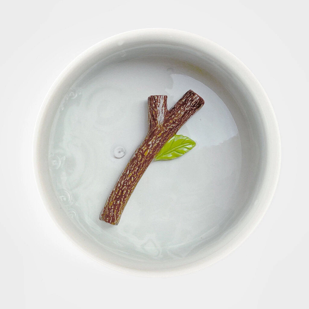 Play a practical joke on your dog. White ceramic water bowl for your favourite pet. 3D hand painted ceramic stick at bottom of the dish. One piece, durable and hard-wearing glazed ceramic. Drive your dog crazy. Plastic free product and packaging. Fool your dog into thinking a stick, perfect for a game of fetch, is floating in their water bowl. The 3D, hand-painted ceramic stick in the bottom of the dish will convince even the smartest pouch that it’s play time. The perfect gift for dog loving tricksters.