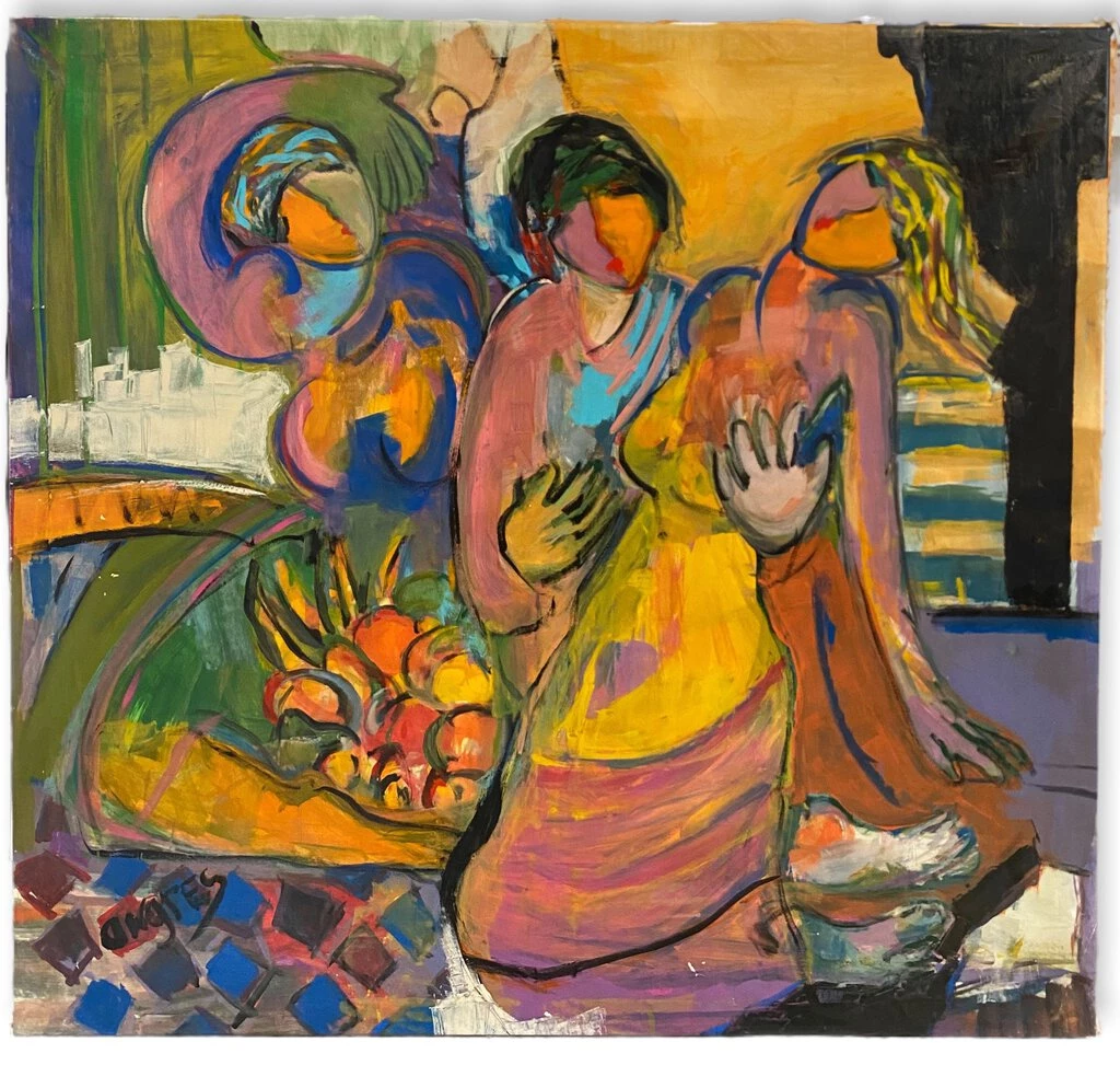 If you like Matisse, you’ll love this big, lush original oil on canvas by late-career artist Giora Angres. The spatially compressed interior scene features three female figures in various states of swoon, busty but for all the flatness. The palette is a fruity melange of purples and peaches — ripe for squeezing. Angres, whose fealty to Master Matisse chafes amusingly against a name that is also a common misspelling of the surname of 19th Century king of Neoclassicism Jean Auguste Dominique Ingres — knows the lasting appeal of cosmetic femininity: in a previous life, Dr. Angres patented the apparatus and procedure for permanent eyeliner. We’re reasonably confident the painting looks just as good whether your eyelids are tattooed or not.