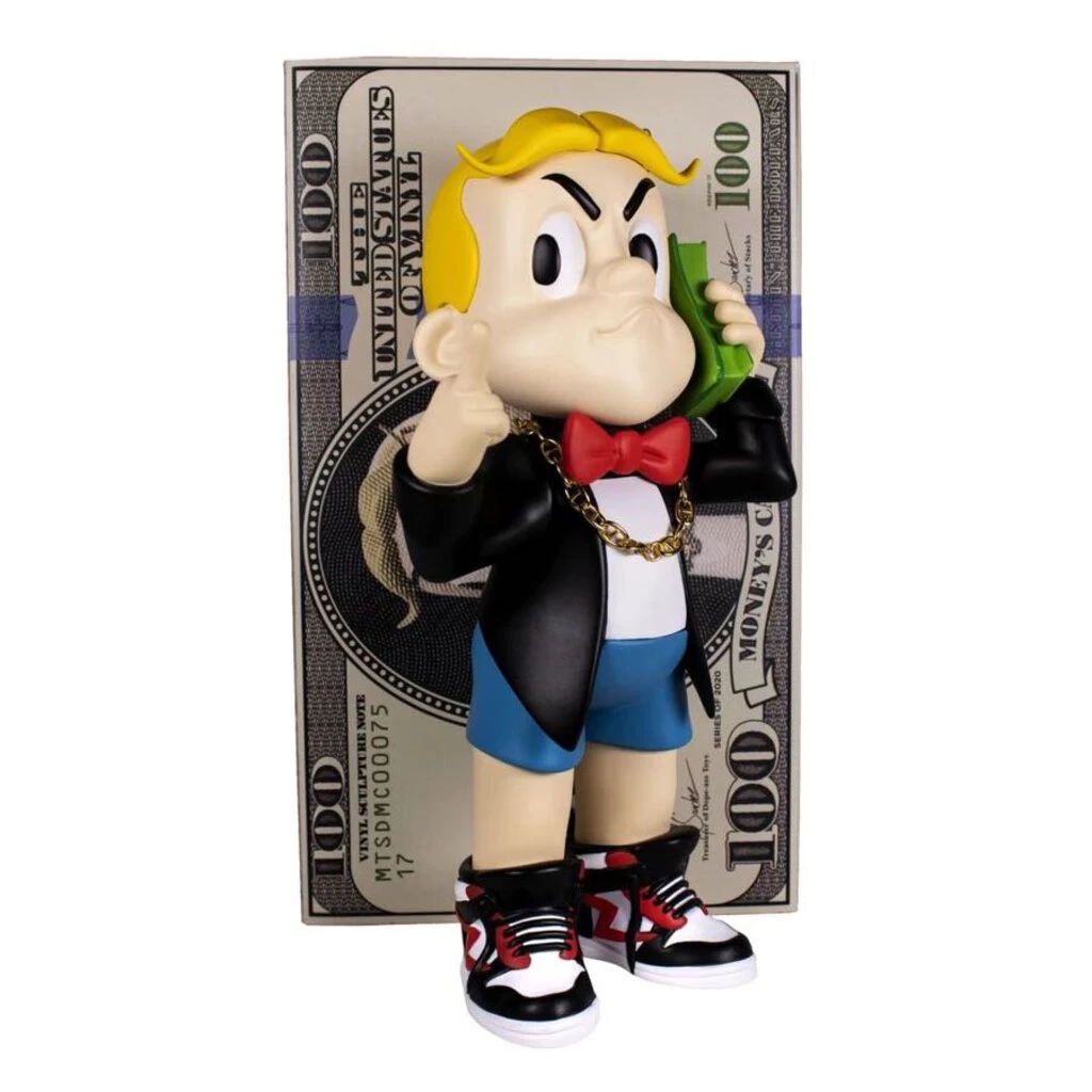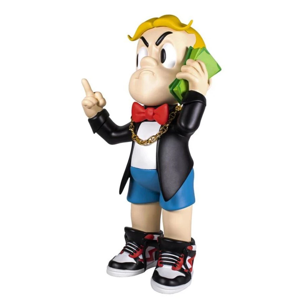 Standing 10” tall, this Vinyl Rich kid has his priorities straight, with a rack to his ear and a finger to the haters. Money talks and he listens while rockin his real chain and Jordans. This vinyl tycoon don’t have time for small talk, only big money.