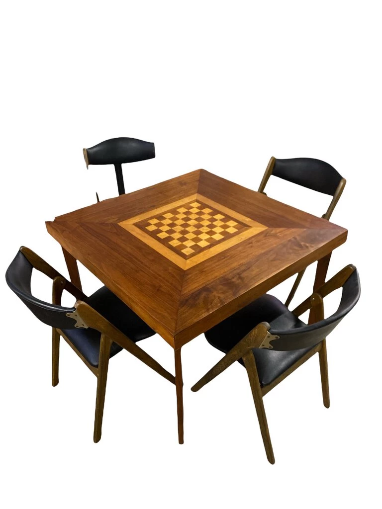 HausOfRex Mid Century Modern Walnut Folding Game Table W/4 Chairs Looking Playing Loving