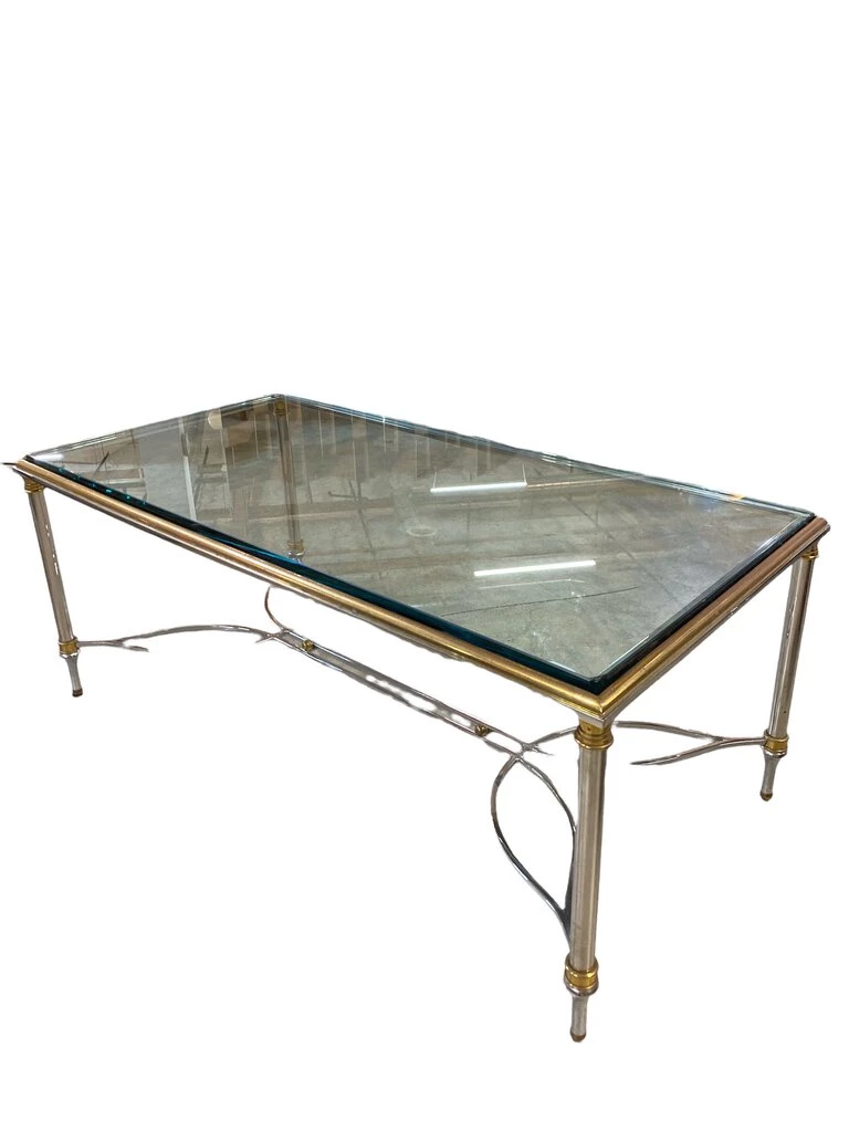 HausOfRex Mid Century Stainless & Brass Glass Top Coffee Table Living
