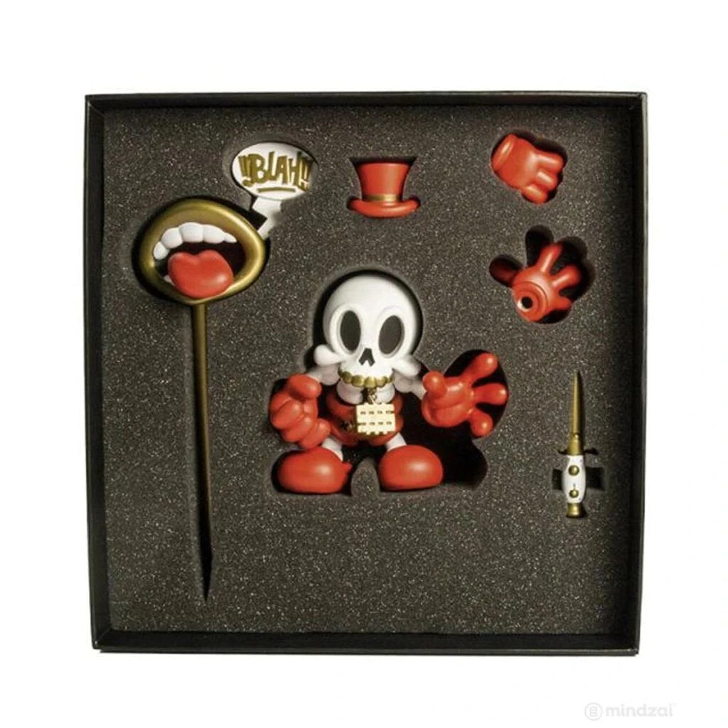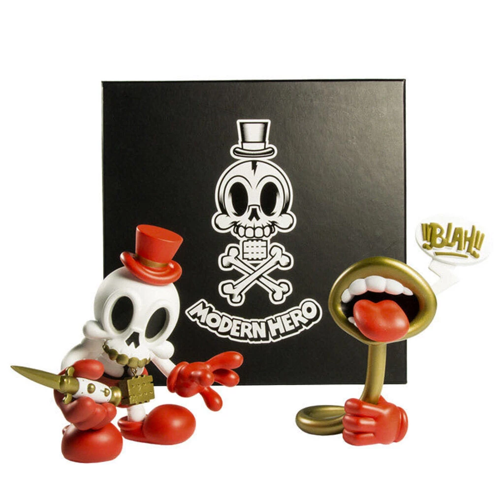 After many years of development, MAD’s Modern Hero character is finally available as an original sculpt. Having been a longtime staple in MAD’s collection of characters, the Modern hero has appeared on many platform designs, custom figures, prints, and more! The “BIG RED” edition is limited to only 200pcs. and released at the “2014 Designer Con” and is now available here for those who couldn’t make it to the show. Each figure stands 6″ high (with the hat on) and is loaded with articulation. Figure comes with a variety of accessories and is all packaged in a deluxe box with foam insert keeping it all safe.