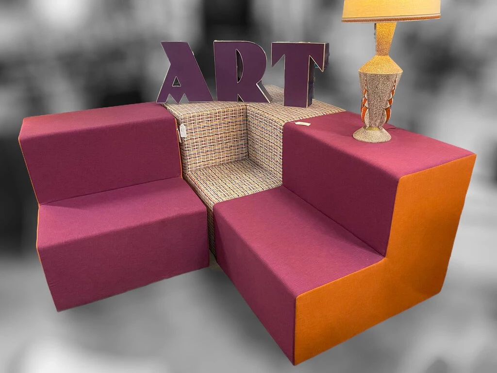 HausOfRex Modular Seating In Purple & Orange Living