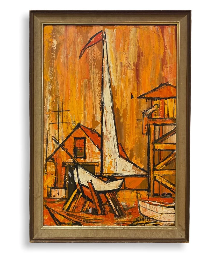 HausOfRex Orange Faux-Naif Marina Painting With Flagpole