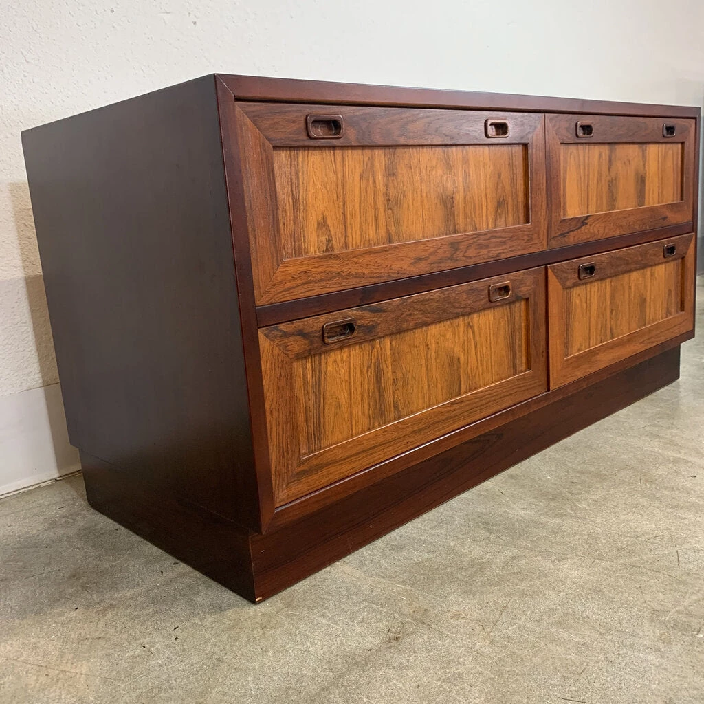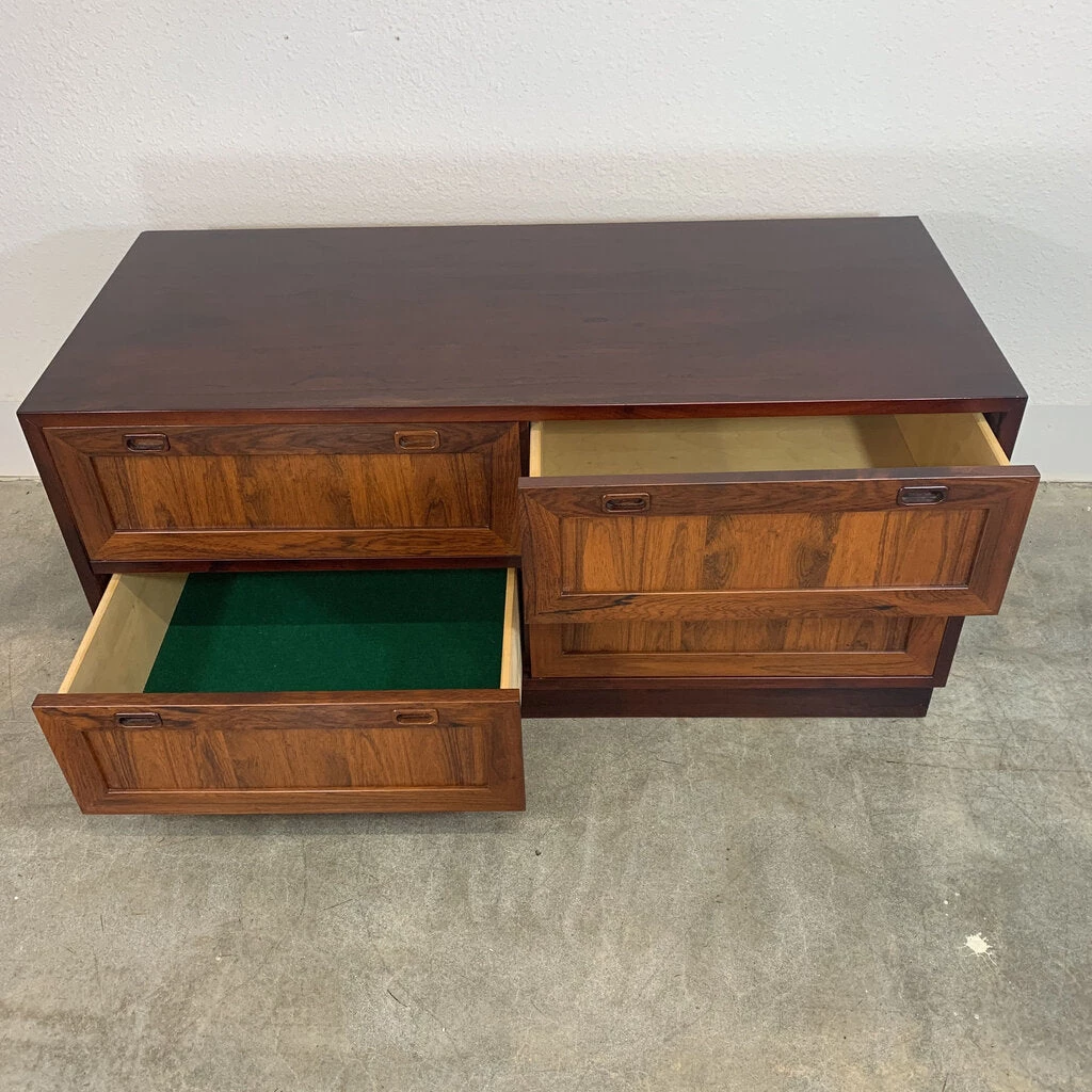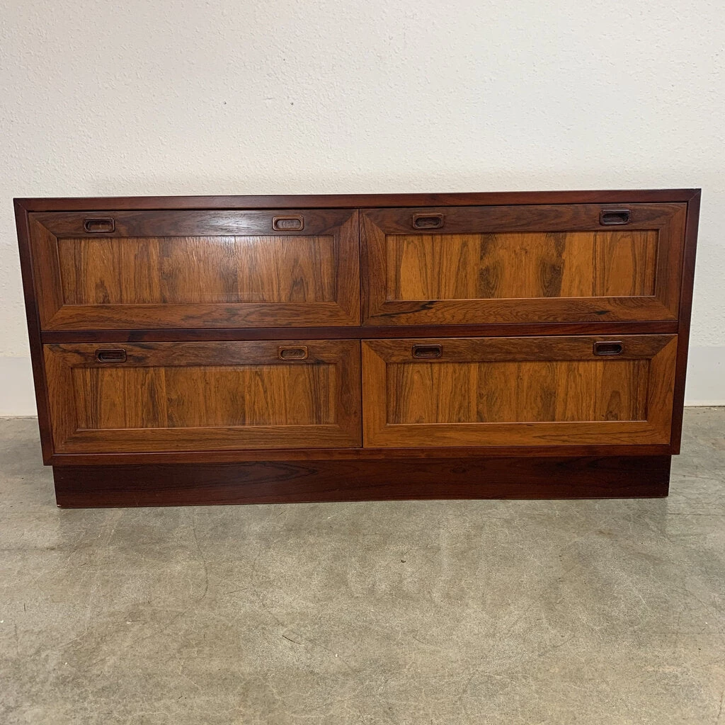 HausOfRex Pouc Hundevad Danish Modern Rosewood Entry Or Flat Screen Storage With Orange Cushion 43.5″ X 19″ X 22″ Living