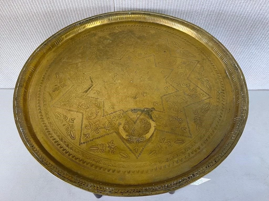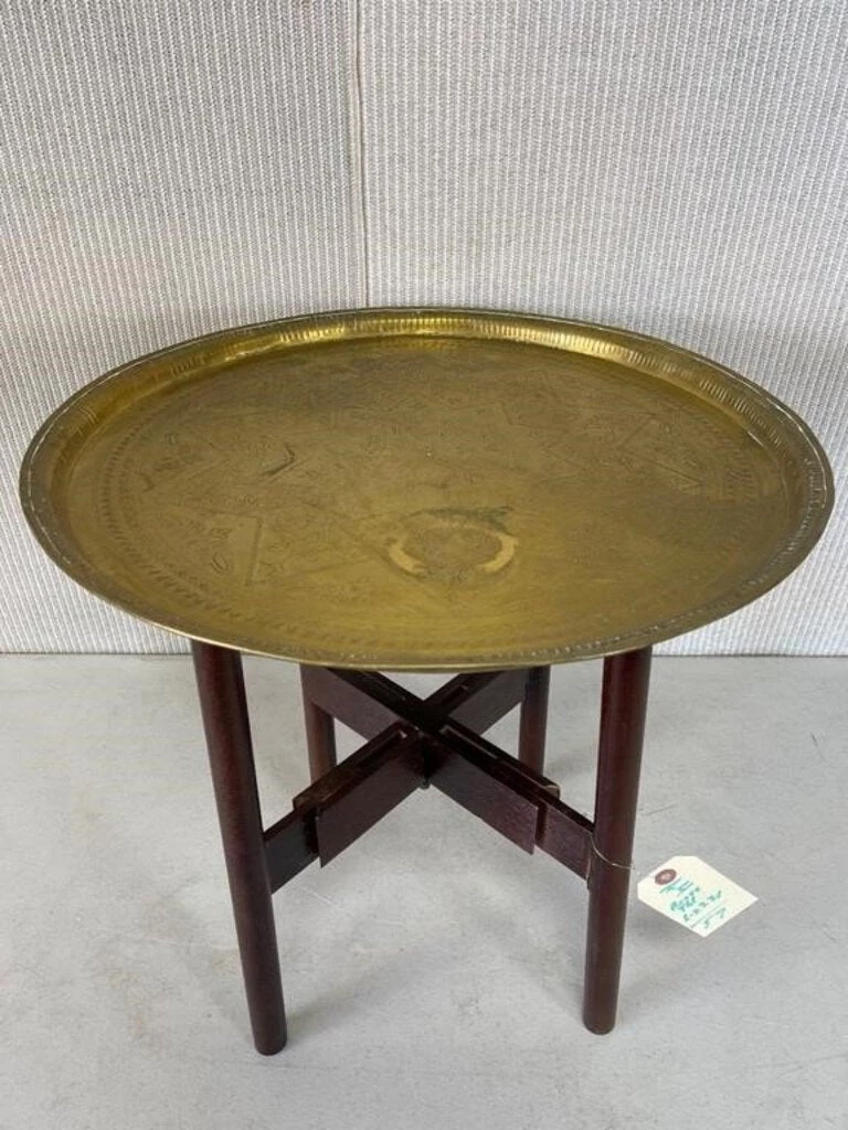 HausOfRex Small Brass Tray Table (Asterform) With Wooden Base
