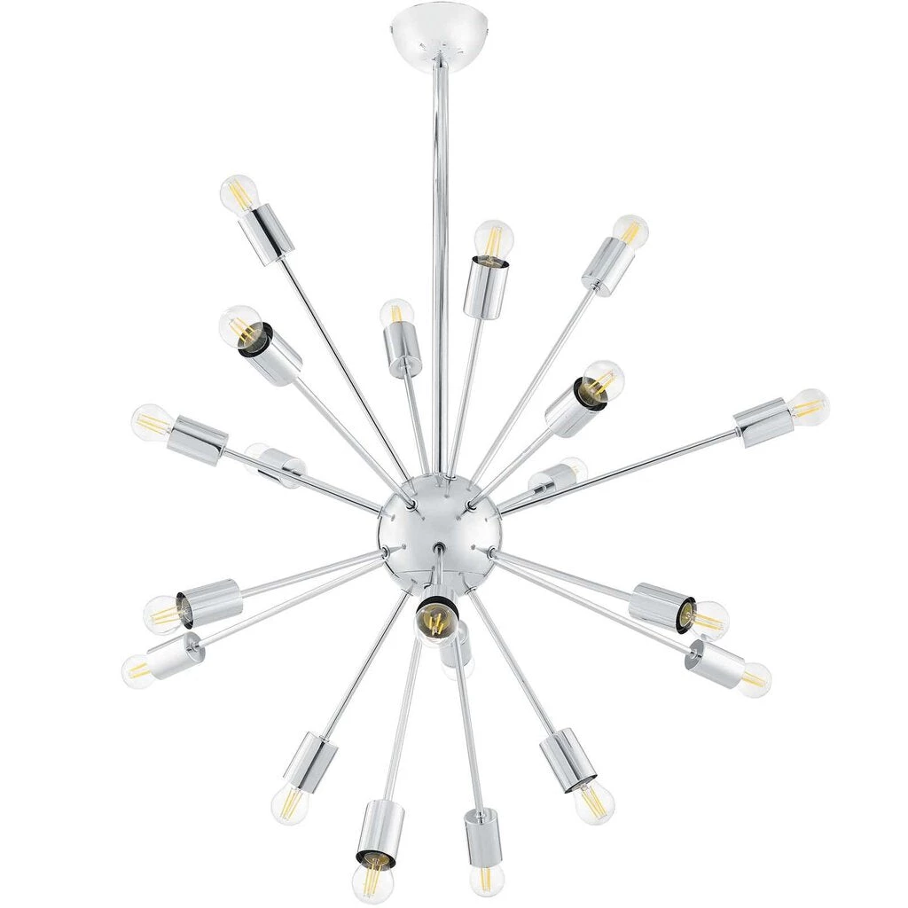 Release an impressive array of twenty-four beams of light with the Sputnik Classic Chrome chandelier. Designed to convey bursts of energy while illuminating your kitchen, living or dining room, Sputnik Classic is an inspiring mid-century modern ceiling pendant made of chrome plated metal that fits twenty-four E12 25W bulbs (not included) and comes with a 39” adjustable wire cord.