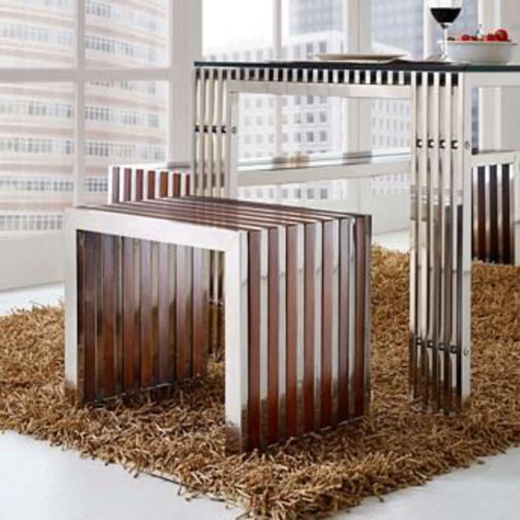 HausOfRex Stainless Steel W/ Walnut Inlay Bench/side Table Living