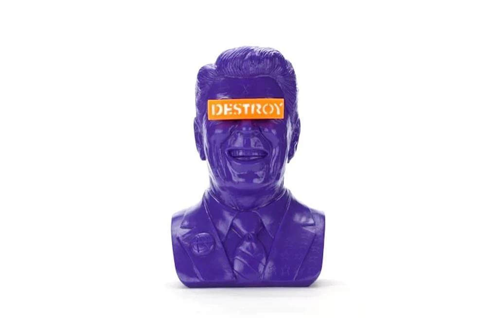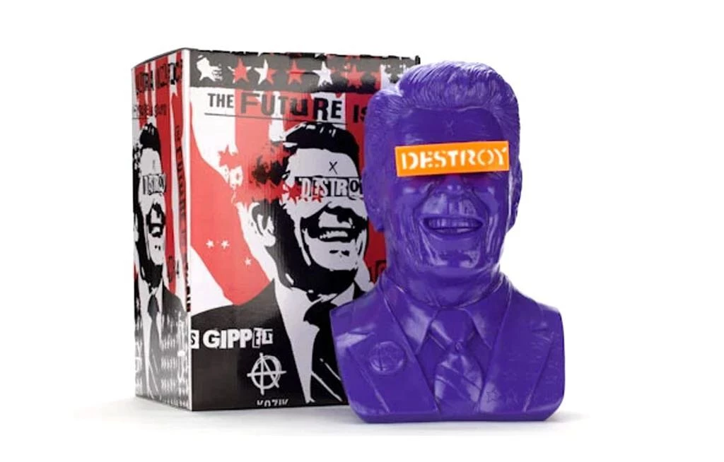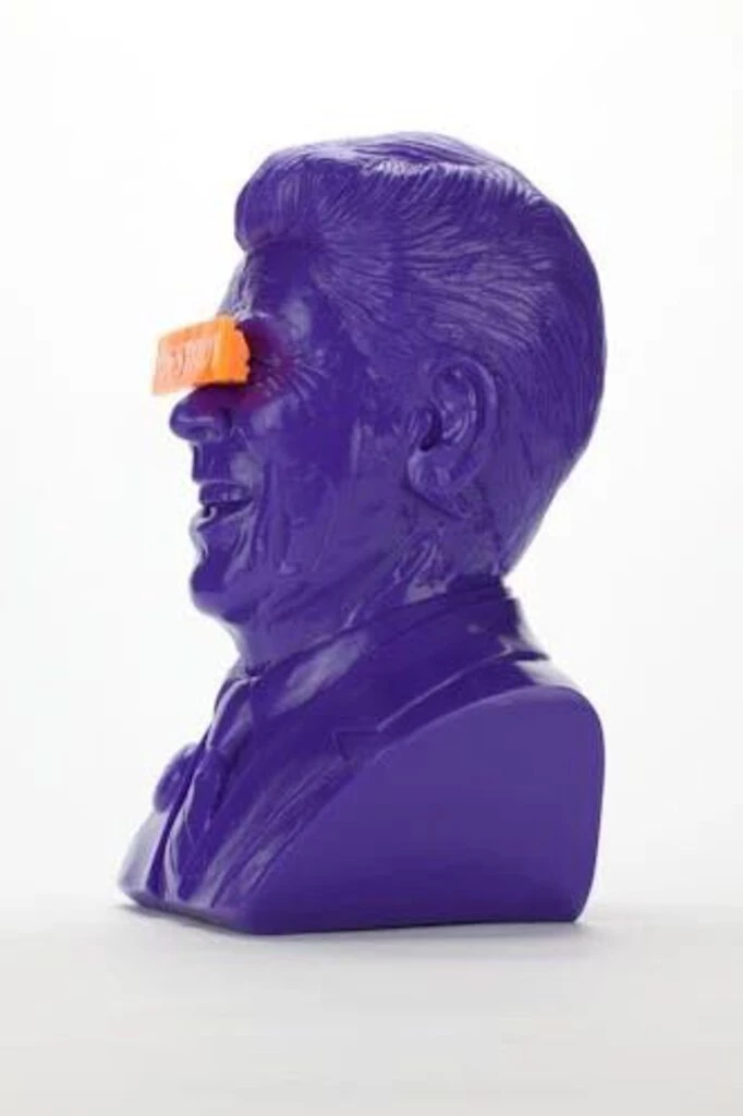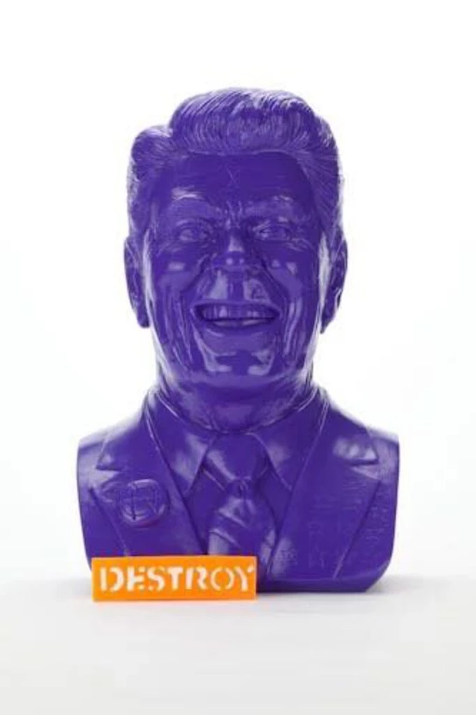 Gipper/Reagan bust from art toy mastermind Frank Kozik. Part of his series of irreverent Busts of 20th century political demagogues, The Gipper follows Mao, Stalin, Che and others to get Kozik’s ultra violence treatment. The Gipper/Reagan Bust in PURPLE is a Clutter exclusive, 18 inches tall with a removable “Destroy” eye plate. Limited to 50 pieces worldwide!
