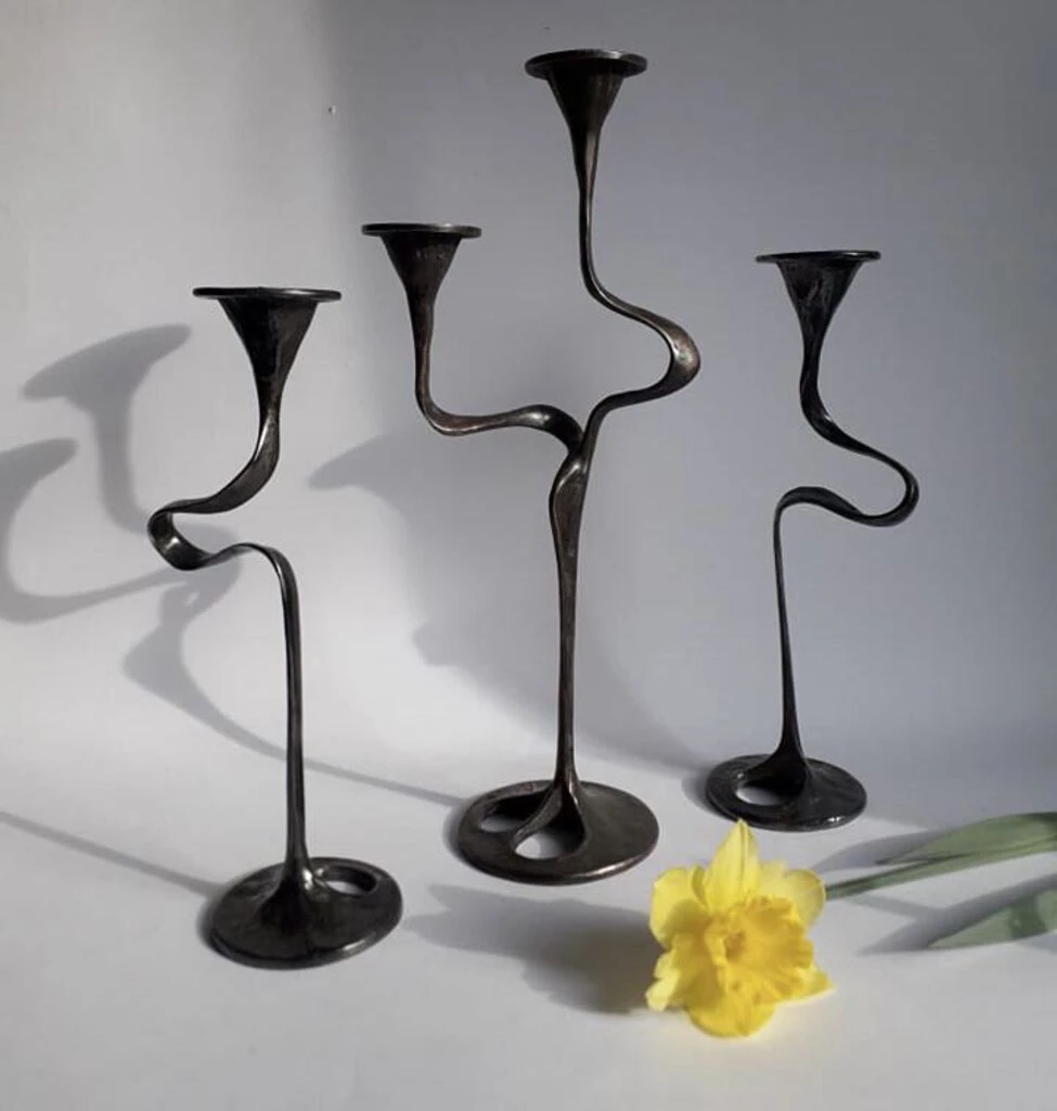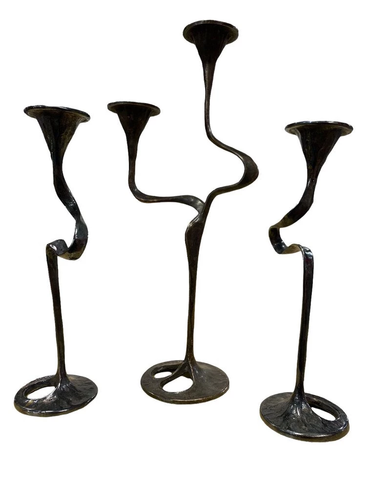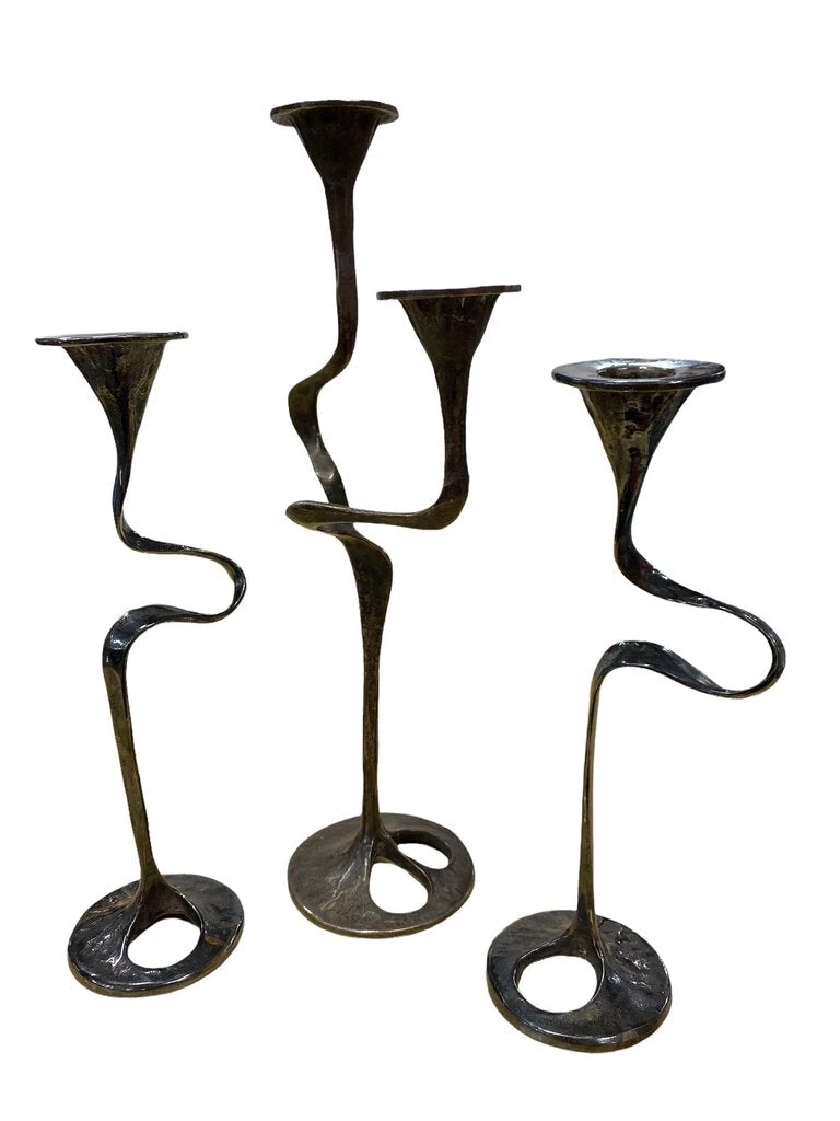 HausOfRex Vintage Brass Art Nouveau 20th Century Candle Holder Set Of 3 By German Baeckhaus Solingen Looking Playing Loving