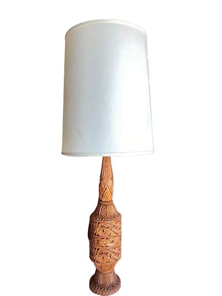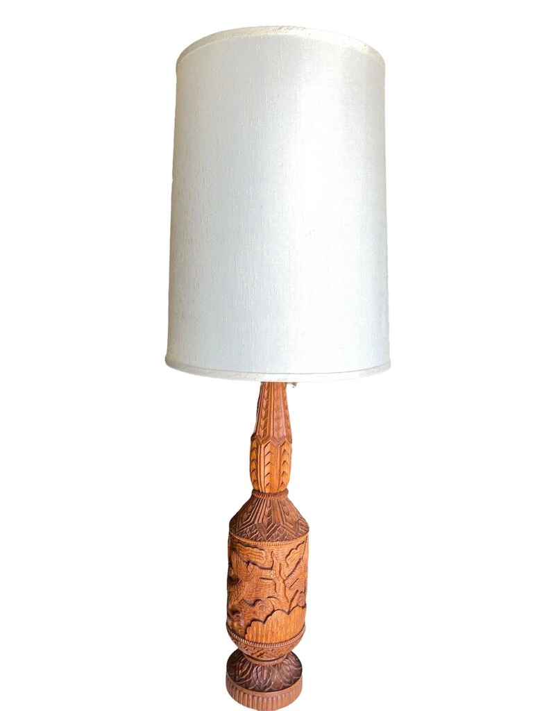 HausOfRex Vintage MCM Handcrafted Teak Wood Table Lamp Lighting