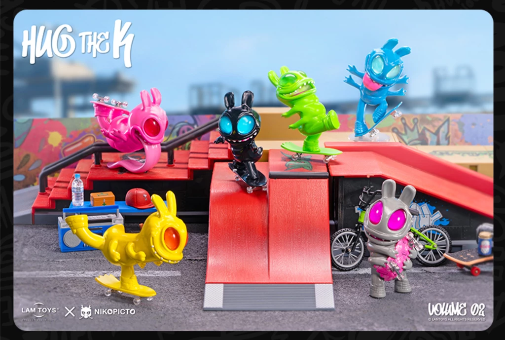 Hug the Killer is back and this time he is SHREDDING IT! Designed by Hong Kong-based studio Nikopicto, Hug the K is a smiling extreme bug with arms extended ready to give you a big ol’ hug, but is it safe? Six designs plus a secret chase in this blind box series, produced by LAM Toys. One random figure per blind box, six blind boxes per case. “The story of Hug the Killer is as such, while his body language is very friendly and welcoming, even to the point of opening his arms to hug you, he has a set of razor sharp teeth that is opening into a grin. It makes you wonder if he indeed is genuinely happy to meet you or are you simply his dinner? We feel that this actually mimics life, in terms of your relationship with the next person. Are they genuine? Or are they simply using you? Hug the Killer defines the moment when you have all these uncertainties and yet you find yourself slowly walking towards Hug, in truth, you will never know the answer.”