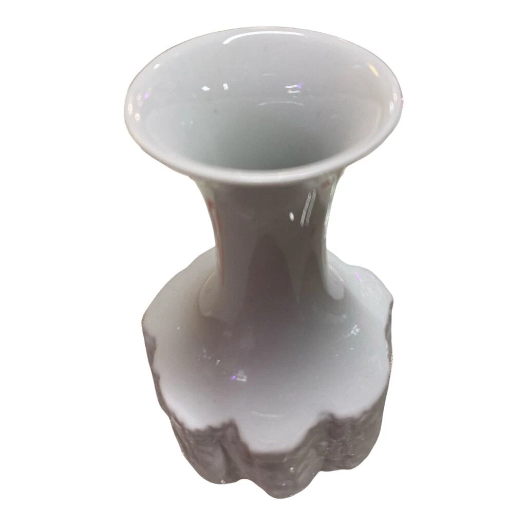 Looking Playing Loving West German Vintage White BIsque Fine Bone Porcelain Vase By Bareuther, C. 1970s