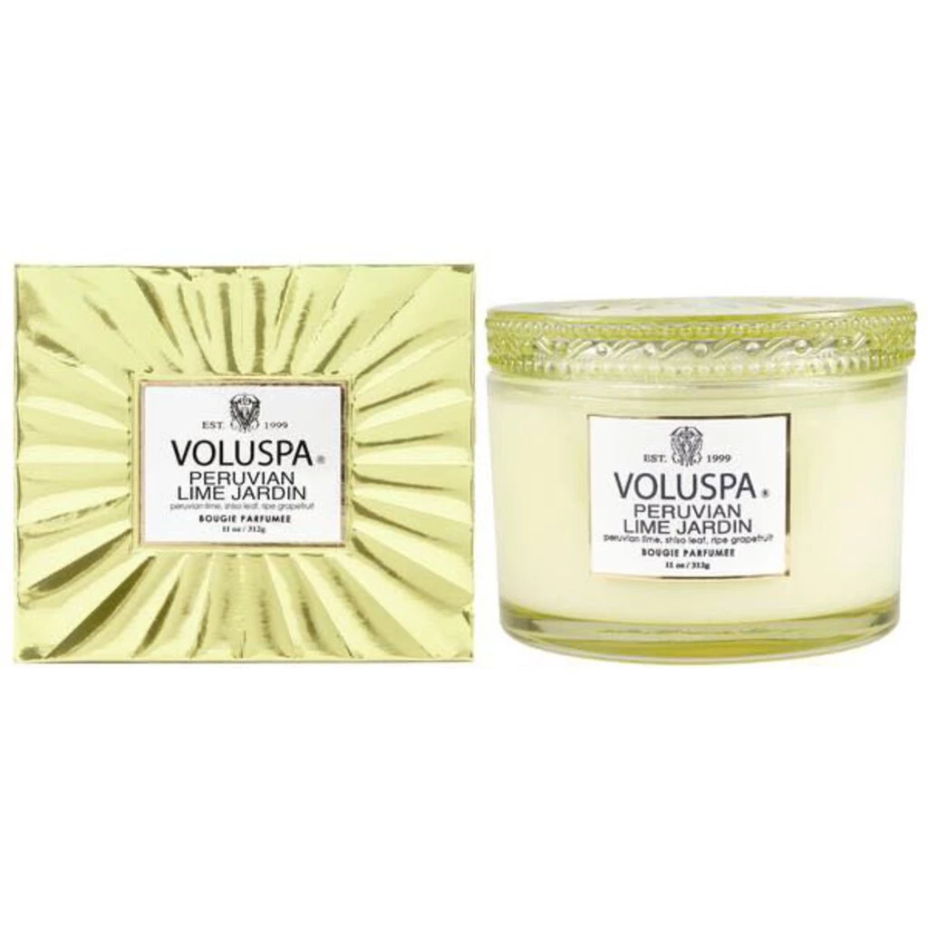 Voluspa PERUVIAN LIME JARDIN Corta Maison Candle Looking Playing Loving